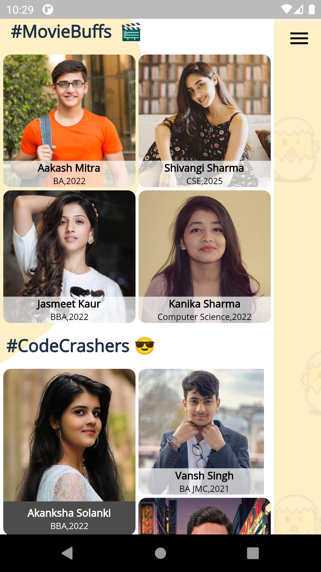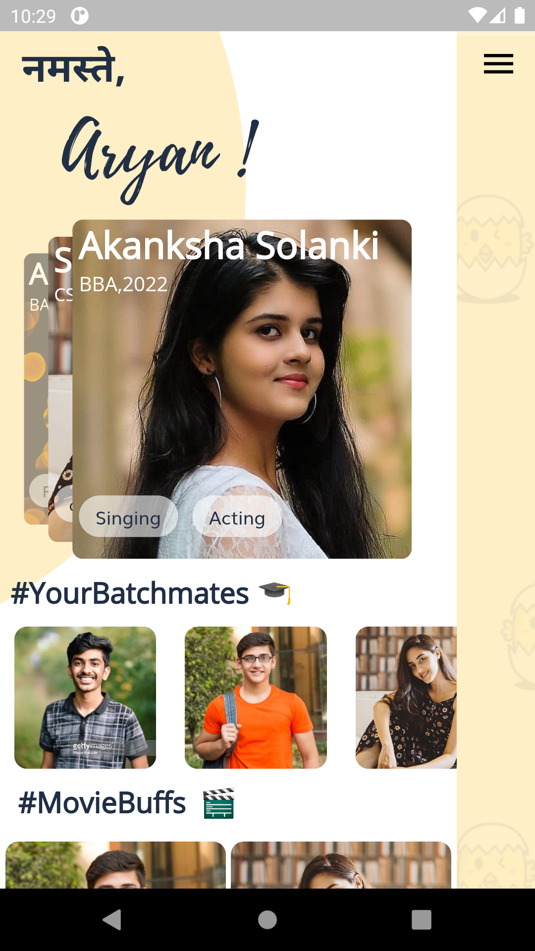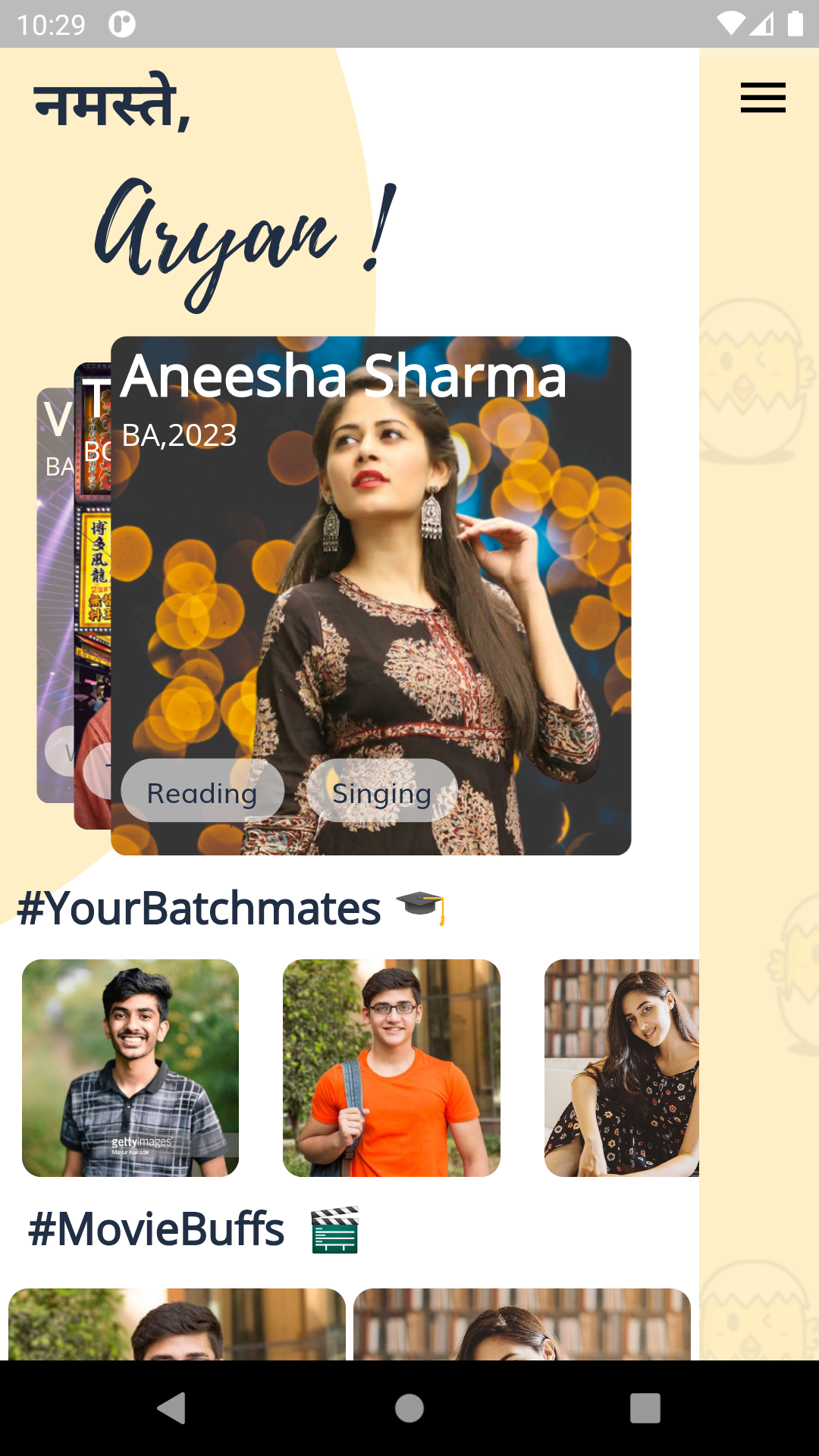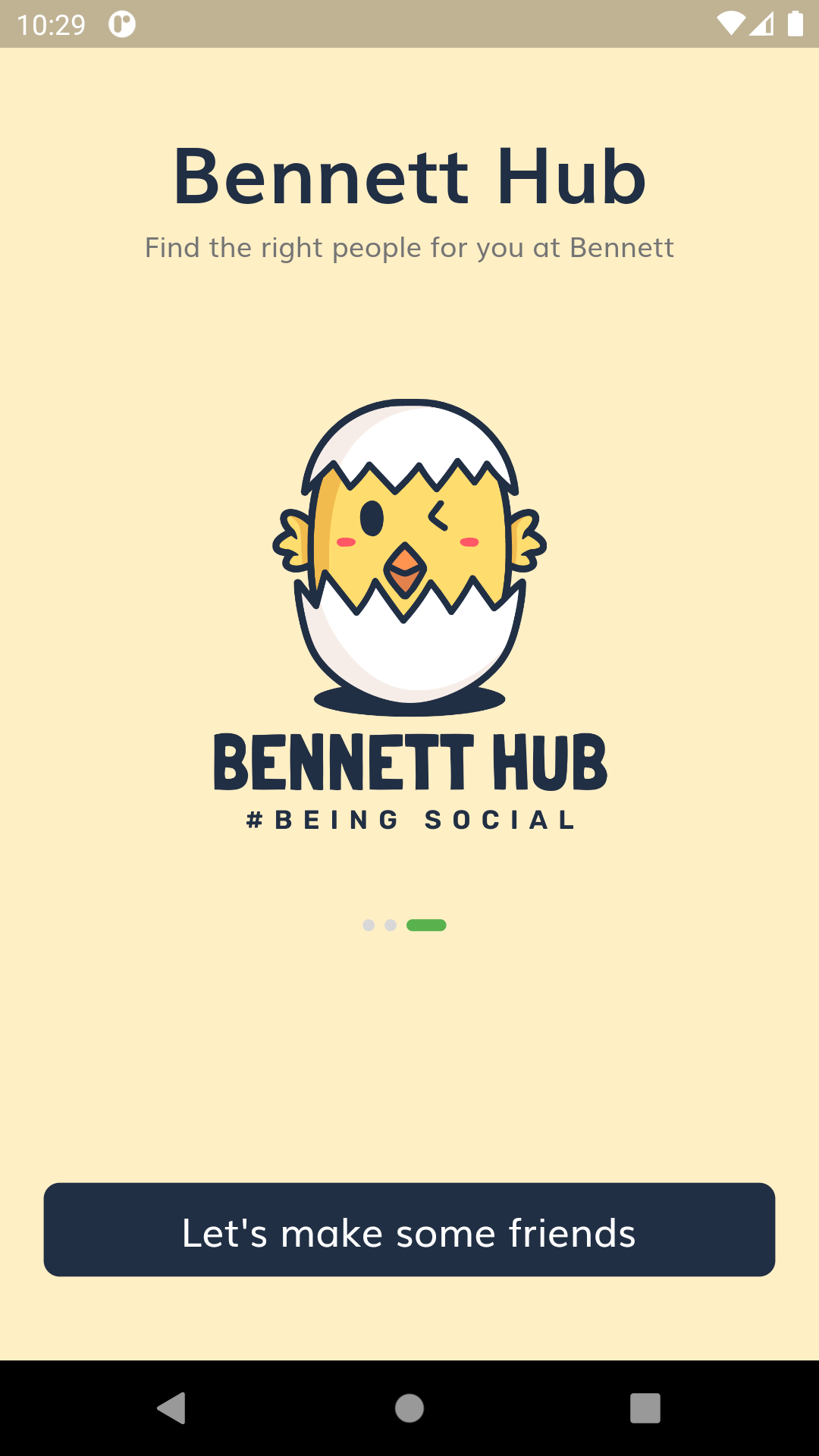 In Bennett Hub we have made the life of students easy by categorizing the students according to their interest so that they can see who shares same interests with them and knowing this would help in starting the conversation at first. we have also provided support for the people who shares same interest where an algorithm will generate a conversation starter message by pressing the “let’s start a chat!” button.